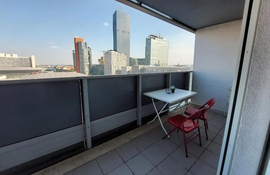 Tower Apartment With Private Terrace Next To Uno está situado en el barrio 22. Donaustadt de Viena, a 500 metros del Centro de Convenciones Austria Center Vienna. Este apartamento de 45 m^2 ofrece instalaciones modernas, como Wi-Fi y servicios esenciales como un aparcamiento para los que viajan en coche.